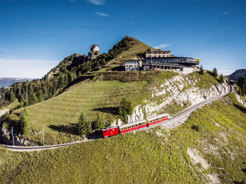 Mount Rigi, often called the “Queen of the Mountains,” is home to Europe’s first mountain railway, inaugurated in 1871. This historic line remains as enchanting today as it was more than a century ago. Departing from Vitznau or Arth-Goldau, the trains climb towards Rigi Kulm, where views extend over Lake Lucerne, Lake Zug, and Lake Lauerz.