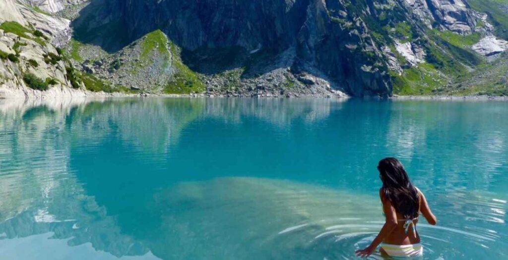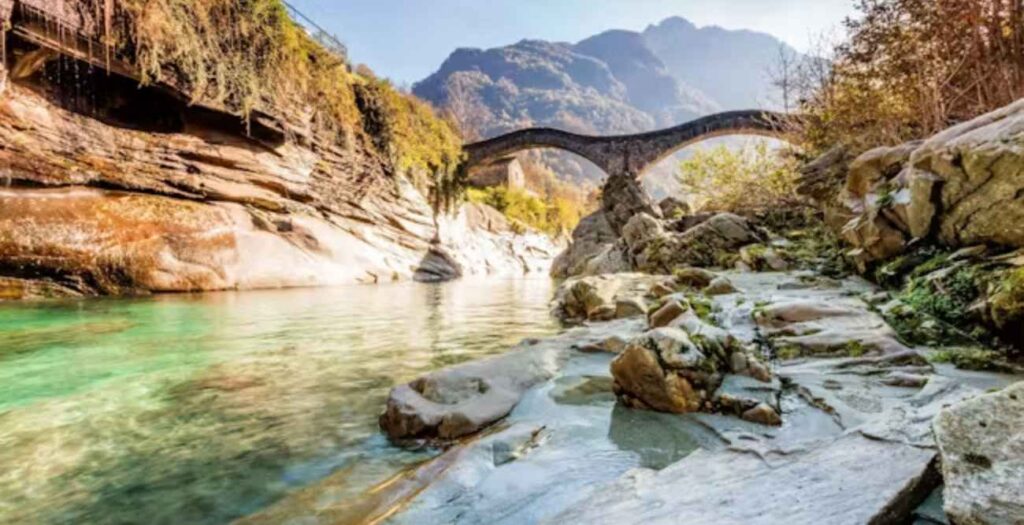 The Valle Verzasca river in Ticino is one of the most Instagrammed swimming spots in Switzerland. Its iconic stone bridge at Lavertezzo and turquoise pools attract swimmers, photographers, and families. While beautiful, it’s important to swim only in safe areas due to strong currents.