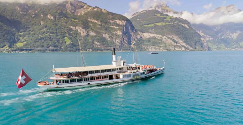 Lake Lucerne combines history and scenery, with medieval towns, mountains like Mt. Rigi and Mt. Pilatus, and traditional paddle steamers. Tourists often cruise the lake, swim in calm bays, or hike the surrounding mountains. It’s also one of the most family-friendly lakes in Switzerland, offering swimming spots with beautiful views.