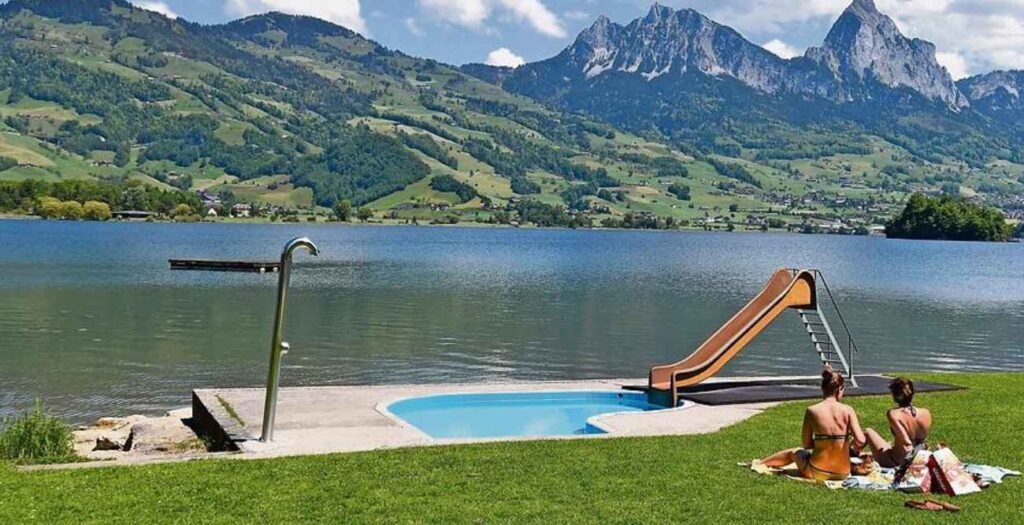 Known as one of the warmest lakes in Switzerland, Lauerzersee is perfect for kids and families. Its shallow, gentle waters make swimming easy even for beginners. Surrounded by the Schwyz countryside, it’s a relaxed, local favorite.