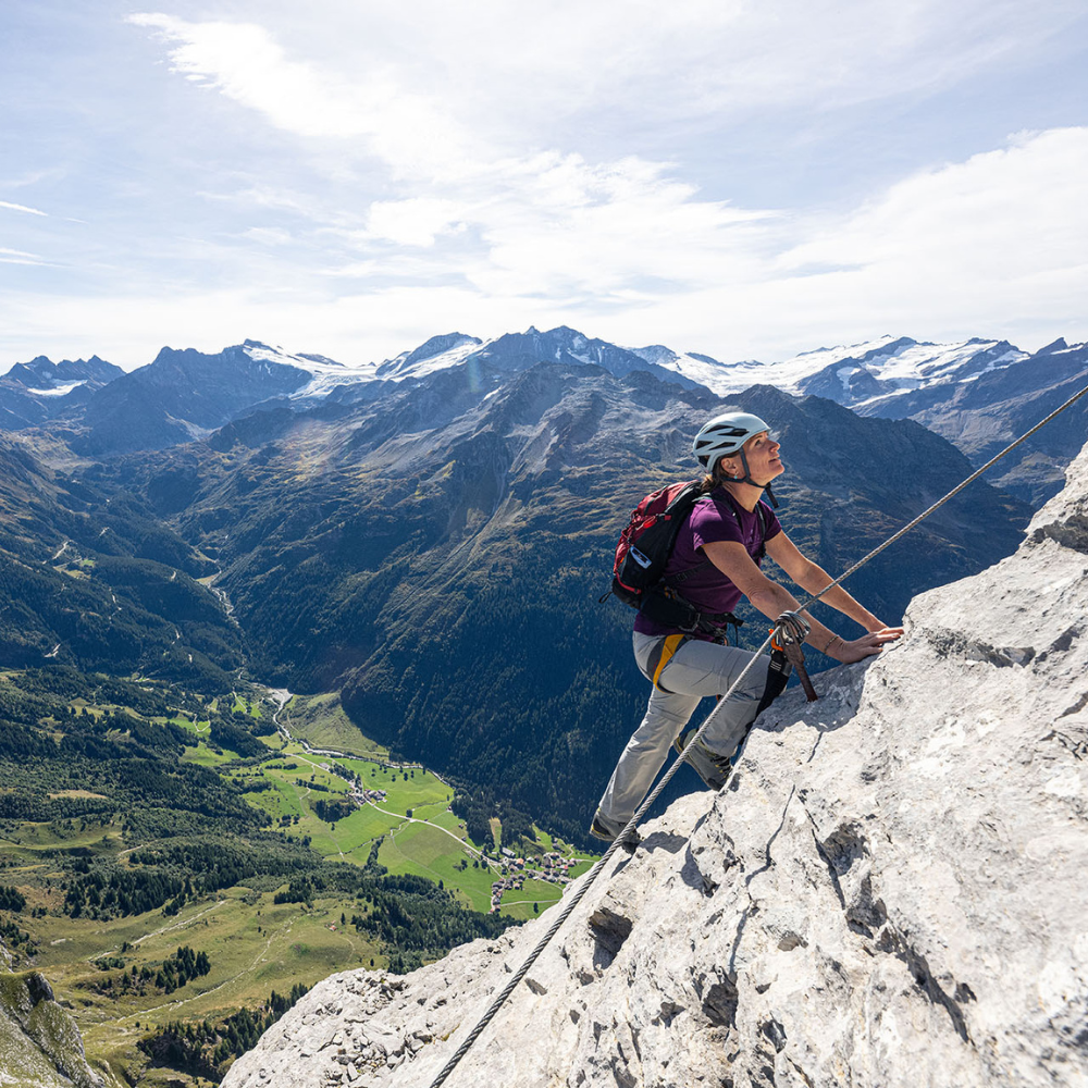 - Highlights: Known as the longest via ferrata in Switzerland (1,000m ascent). Panoramic view of Rhone Valley.